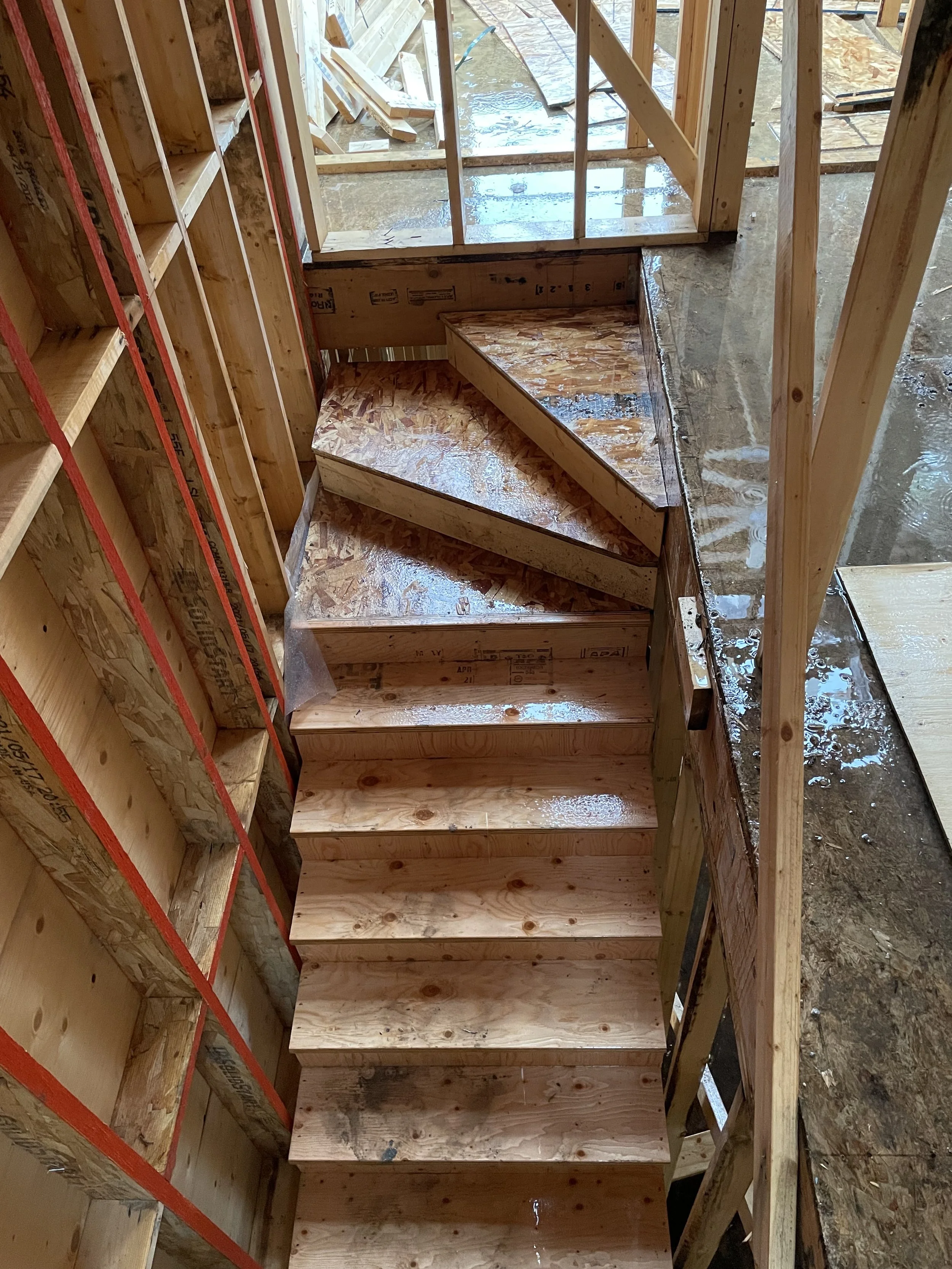 Landings and Winders - dimensional lumber and plywood glued and screwed